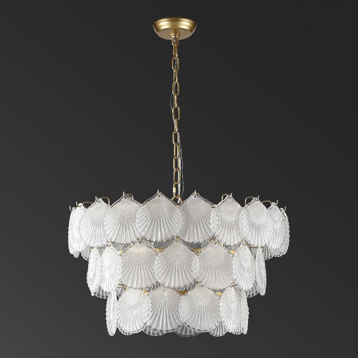 A glamorous take on coastal-chic, this Gutierrez Chandelier redefines any room with unmatched splendor. Three tiers of white frosted glass designed after scallop shells cast soft, whimsical light when lit, and its chic gold finish beautifully elevates Gutierrez's aesthetic prowess.