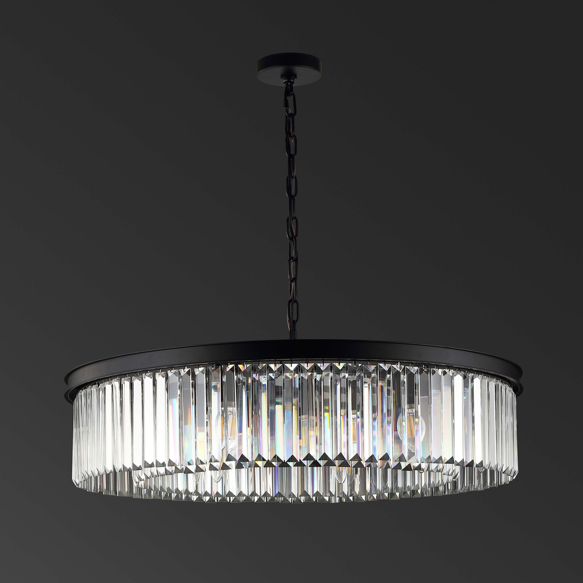 Transform your interior with the Art Deco decadence of this stunning Jennaya Chandelier. Featuring a double halo of elongated crystal prisms that dance in the light, Jennaya's lavish look gives any room a defined sense of Old Hollywood glamour.