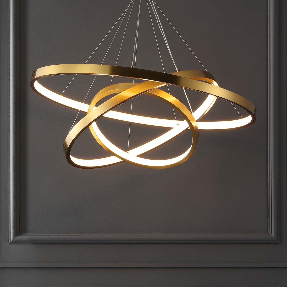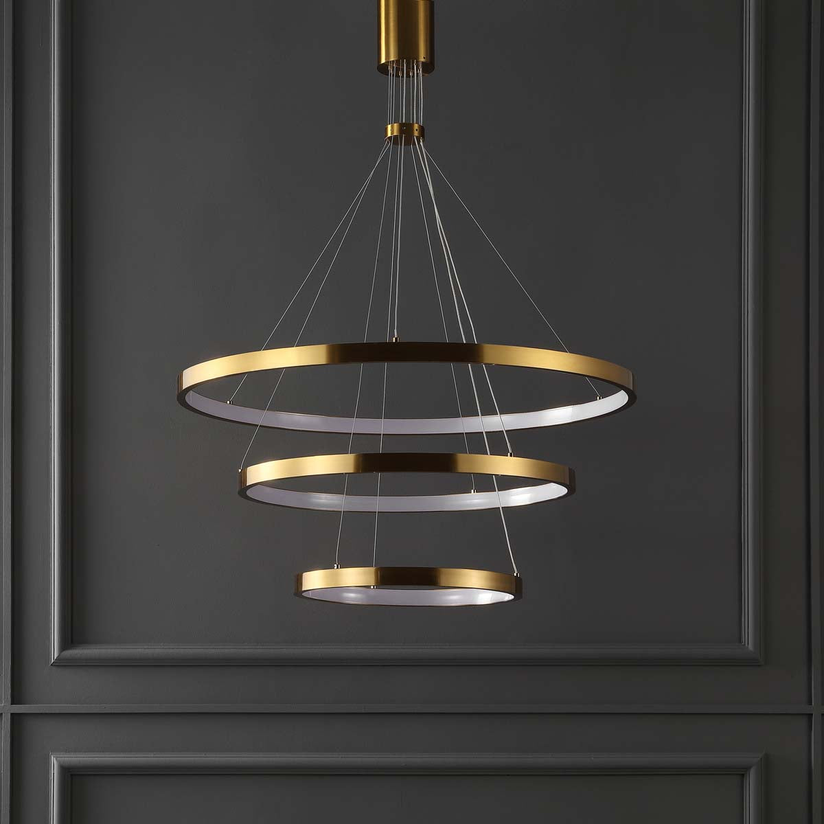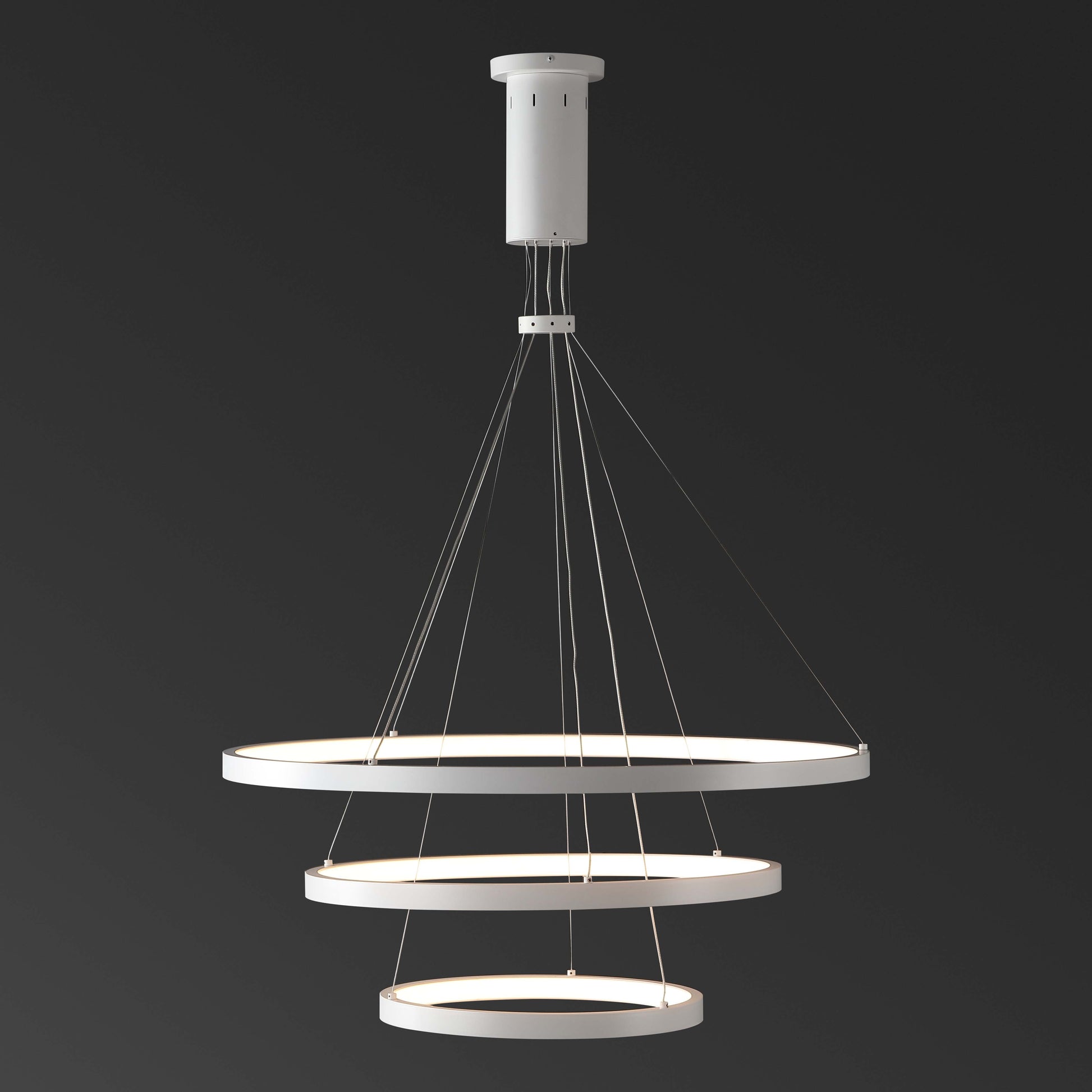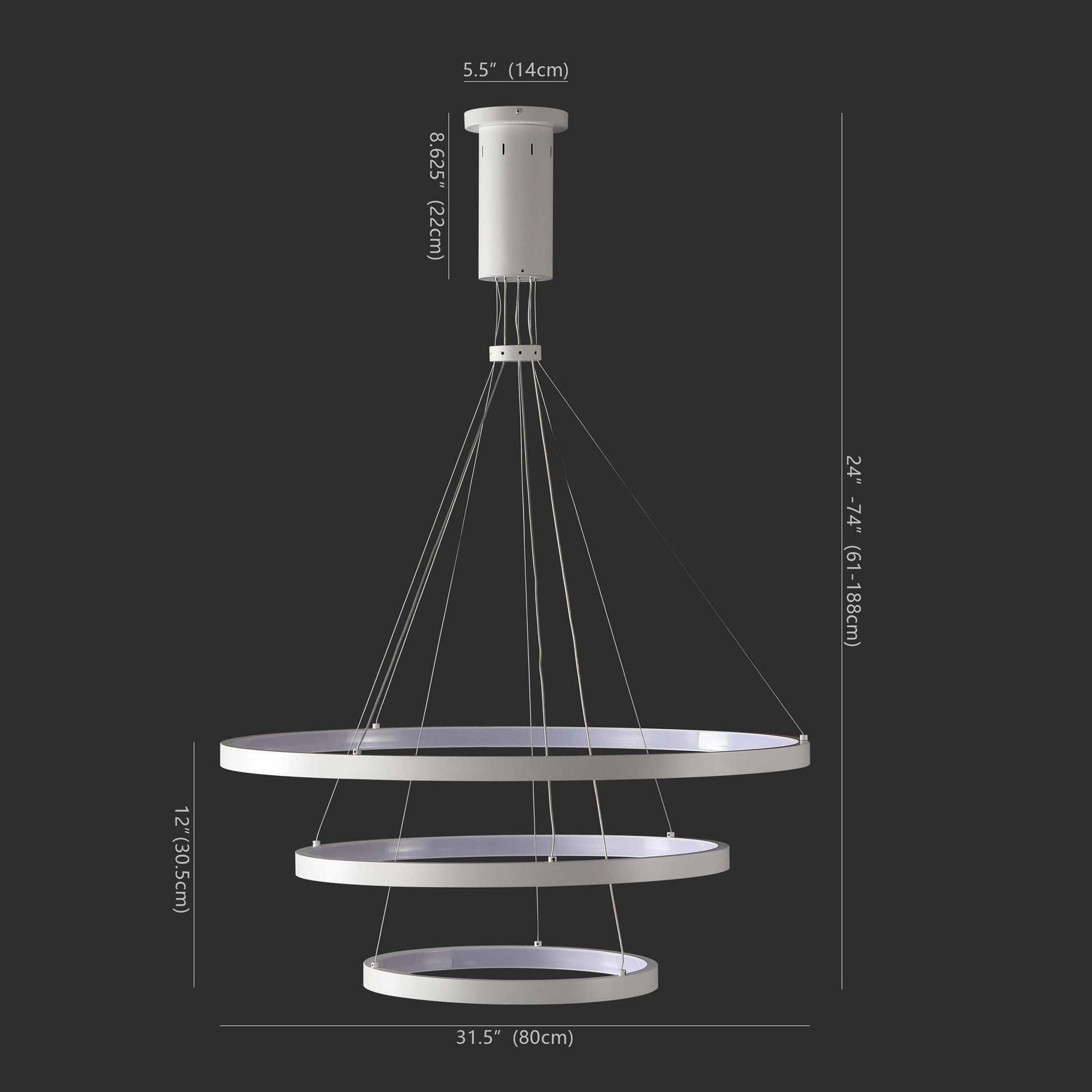 A minimalist expression of modern glamour, this Meranda Chandelier is in a class of its own. Three tiers of illuminated halos in sleek black metal cascade as if floating in midair, creating an illusionary display that transforms any living space with rich depth and motion.