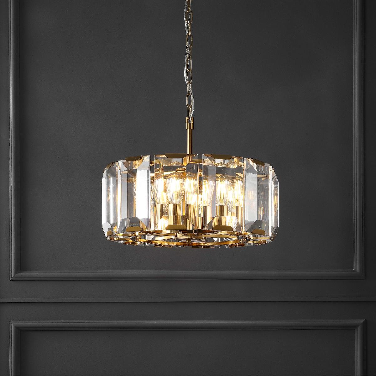 Lavishly styled after emerald-cut gemstones, this Symone Chandelier instantly inspires an air of decadence in any room. Unapologetic yet sophisticated, Symone's faceted glass beautifully sparkles against its gold frame when lit, casting a brilliant shine over your decor.